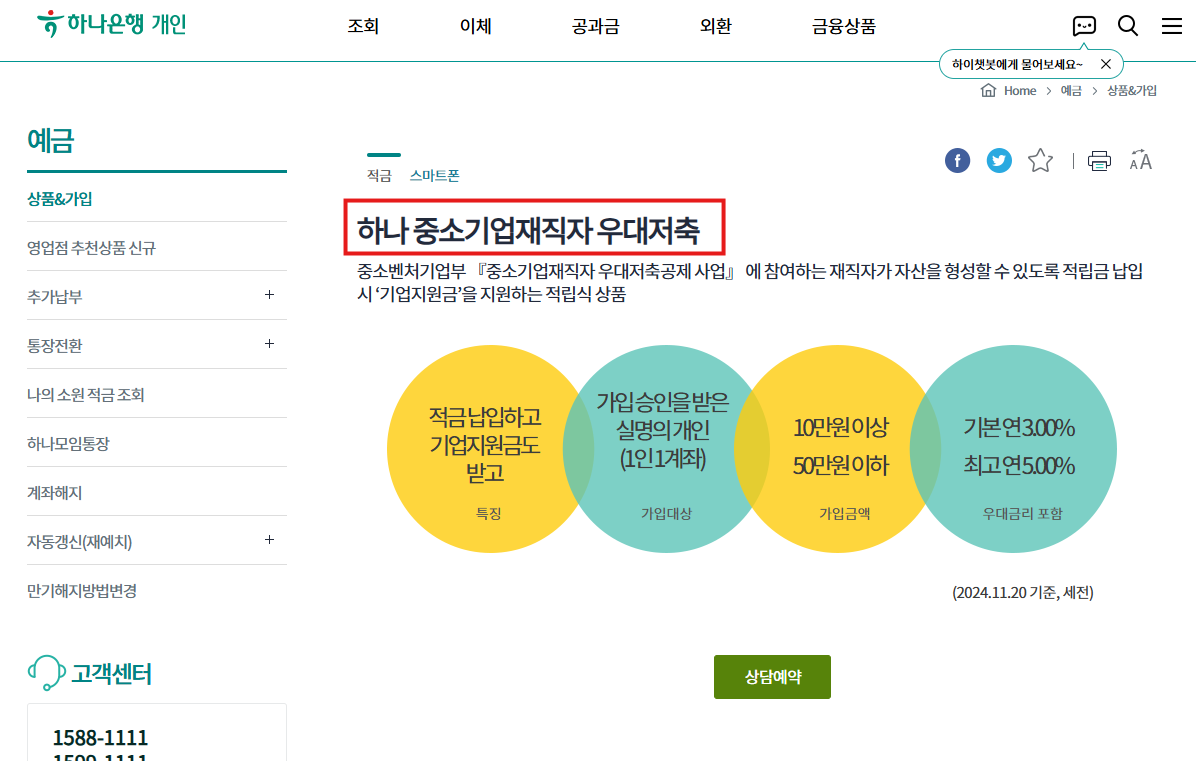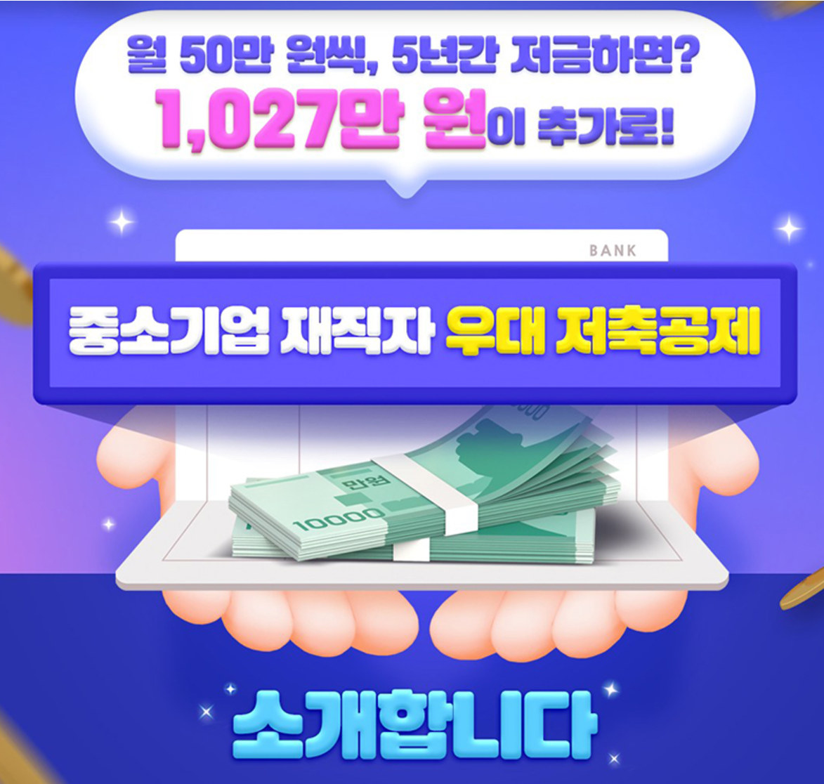 이 상품은 중소기업 재직자가 매달 최대 50만 원을 적립하면, 기업이 재직자 납부금의 20%를 추가로 지원하여 만기 시 전액이 지급됩니다.