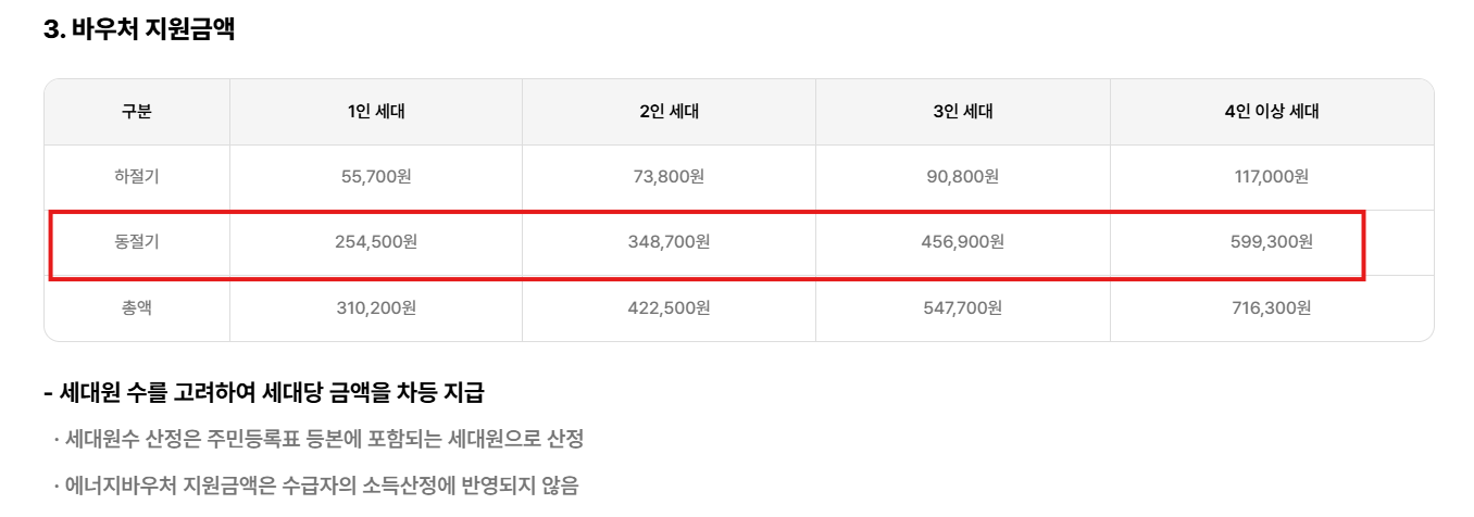 동절기 에너지바우처는 세대원의 수에 따라 차등 지급됩니다.